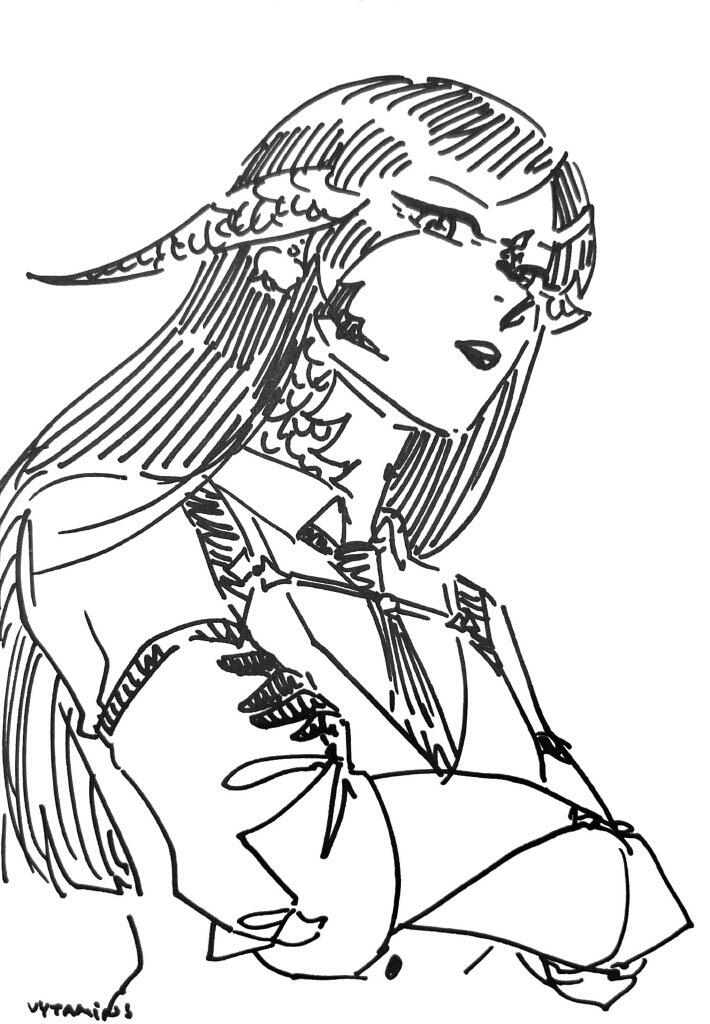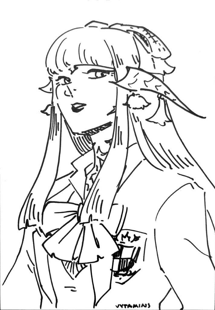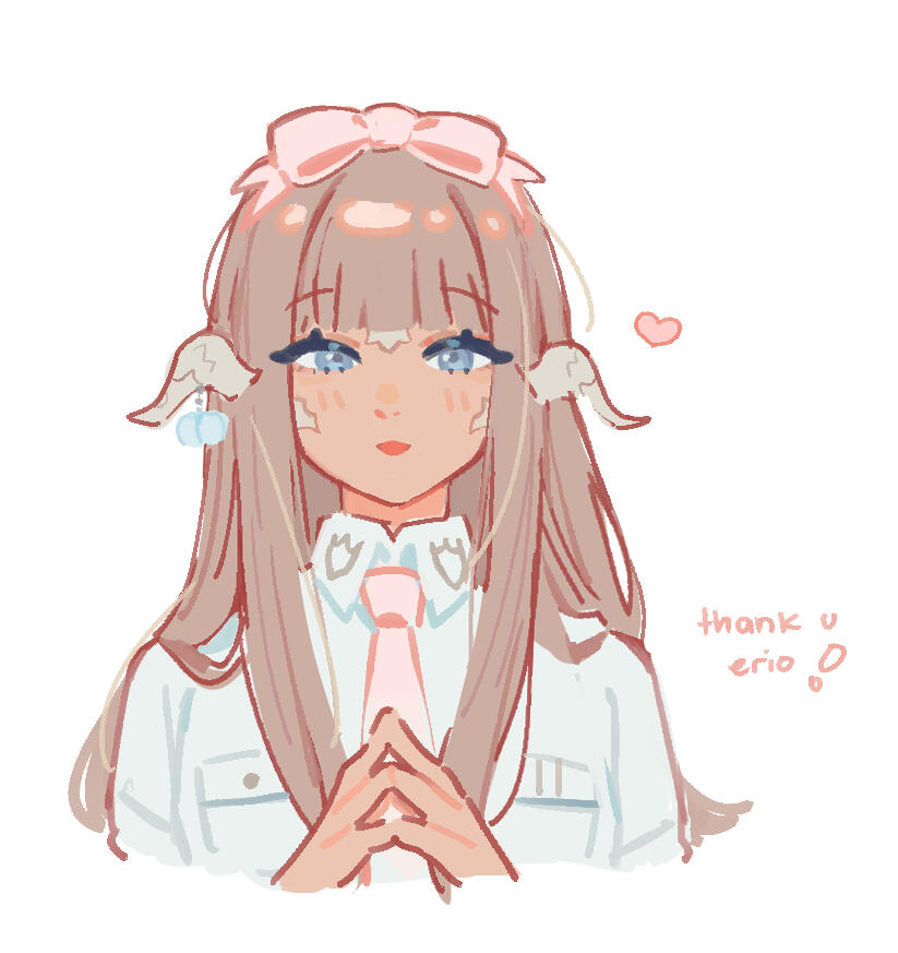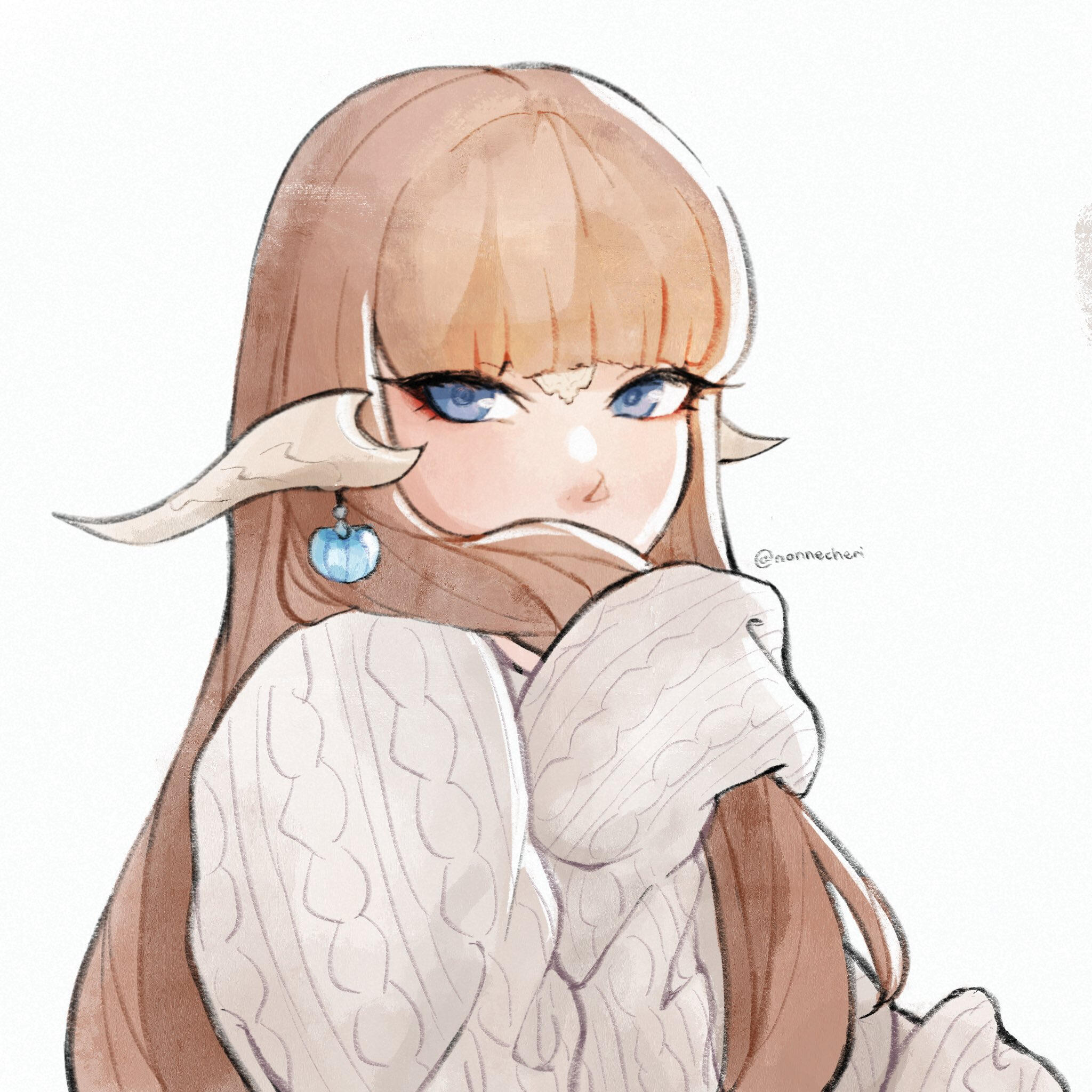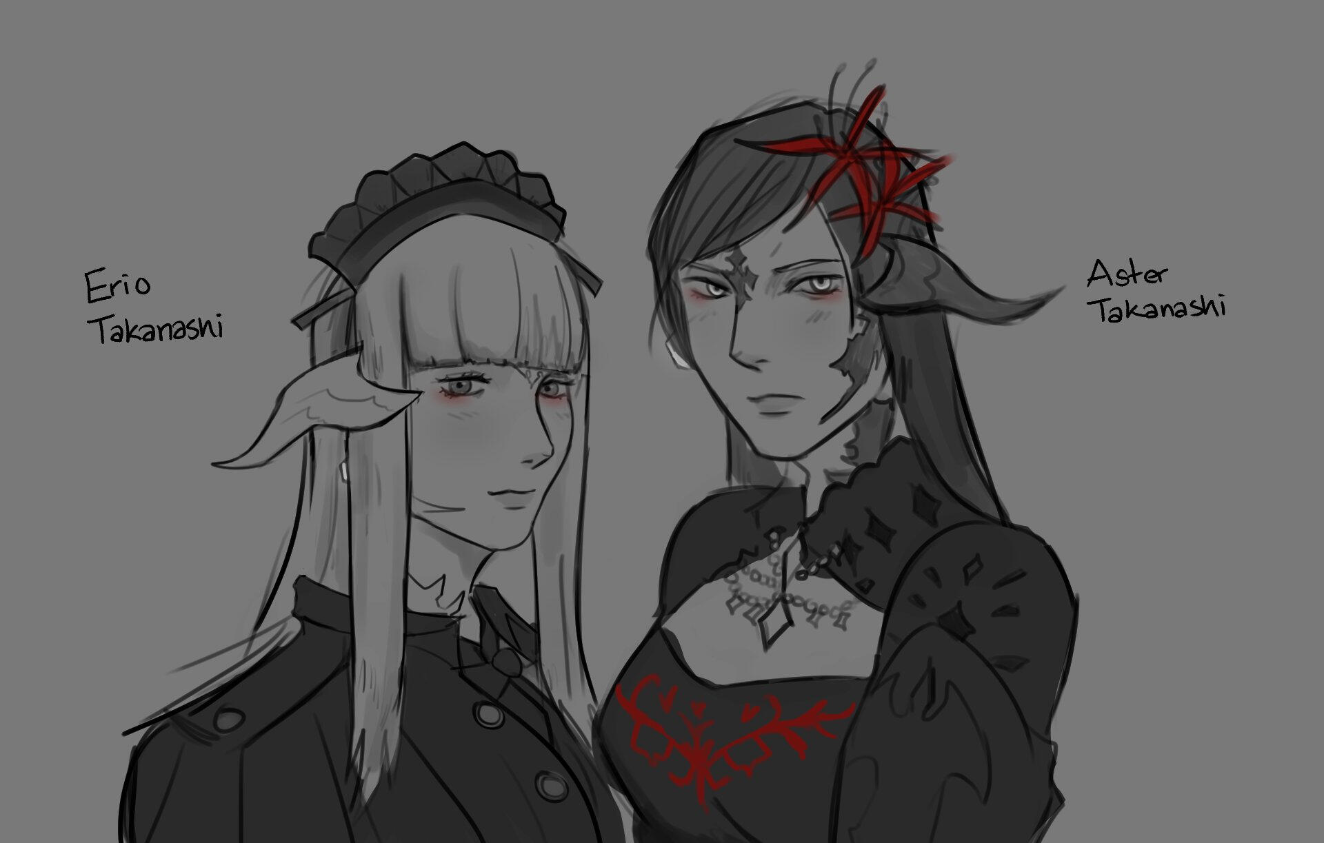 Erio is a petite, lithe woman with fair complexion and sapphire eyes. The Raen has light brown hair styled in a hime cut, though it is not unlikely to see it fashioned differently to suit the occasion.She is reserved in appearance and personality, electing to dress feminine and elegant. Some of Erio's favorite accessories include glass pumpkin and firecrest earrings, an eternity ring; she may choose to forgo silver horn ornaments.