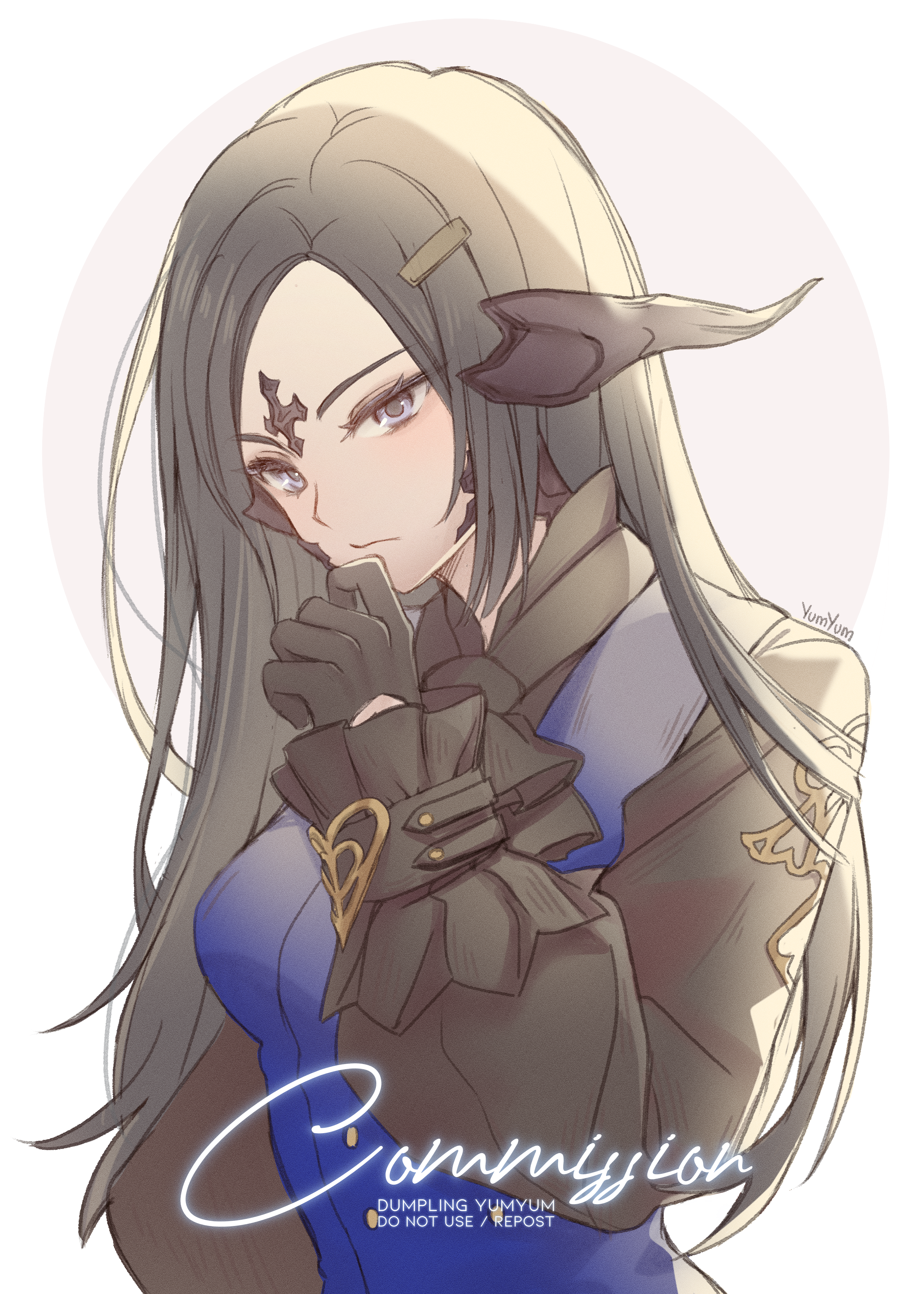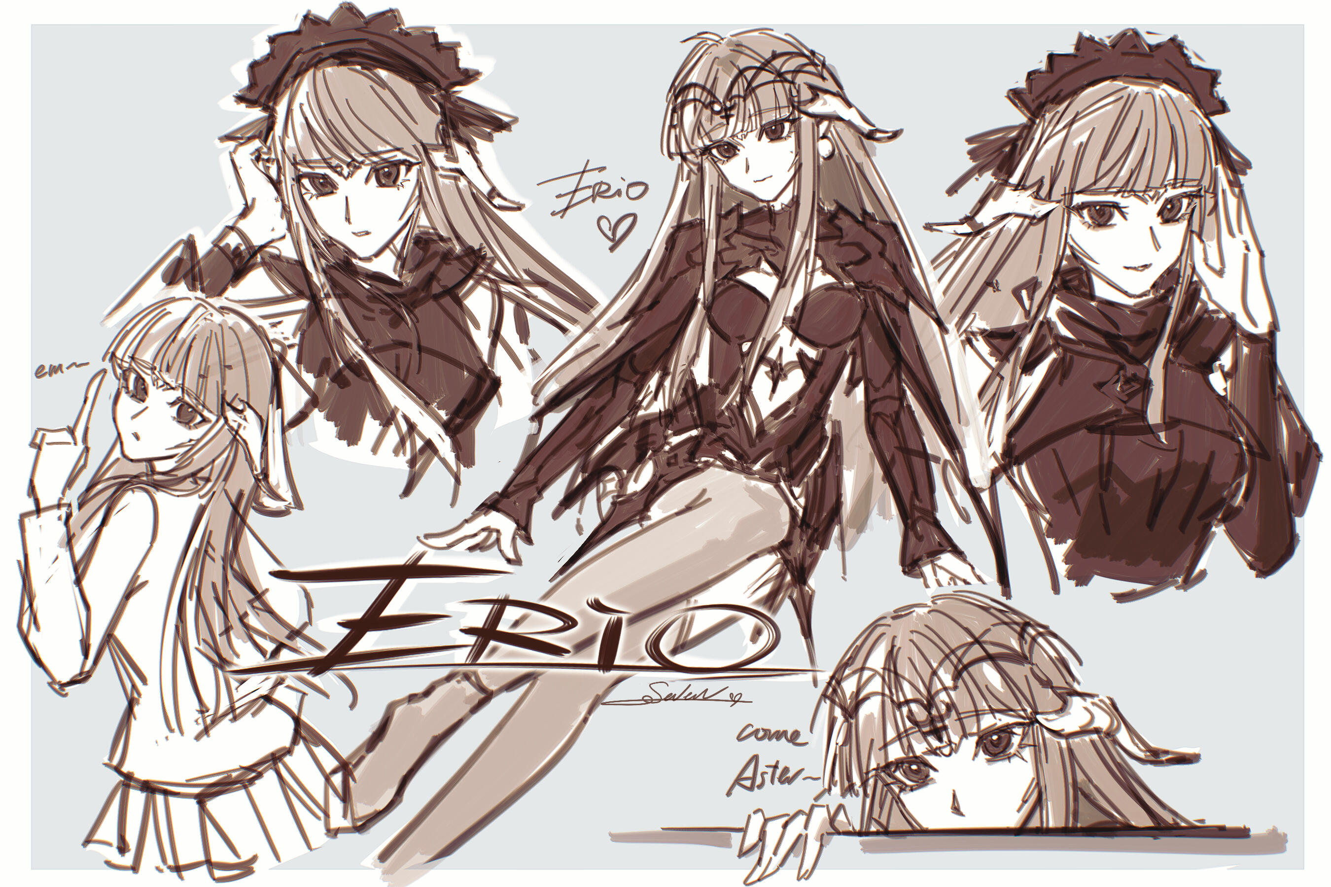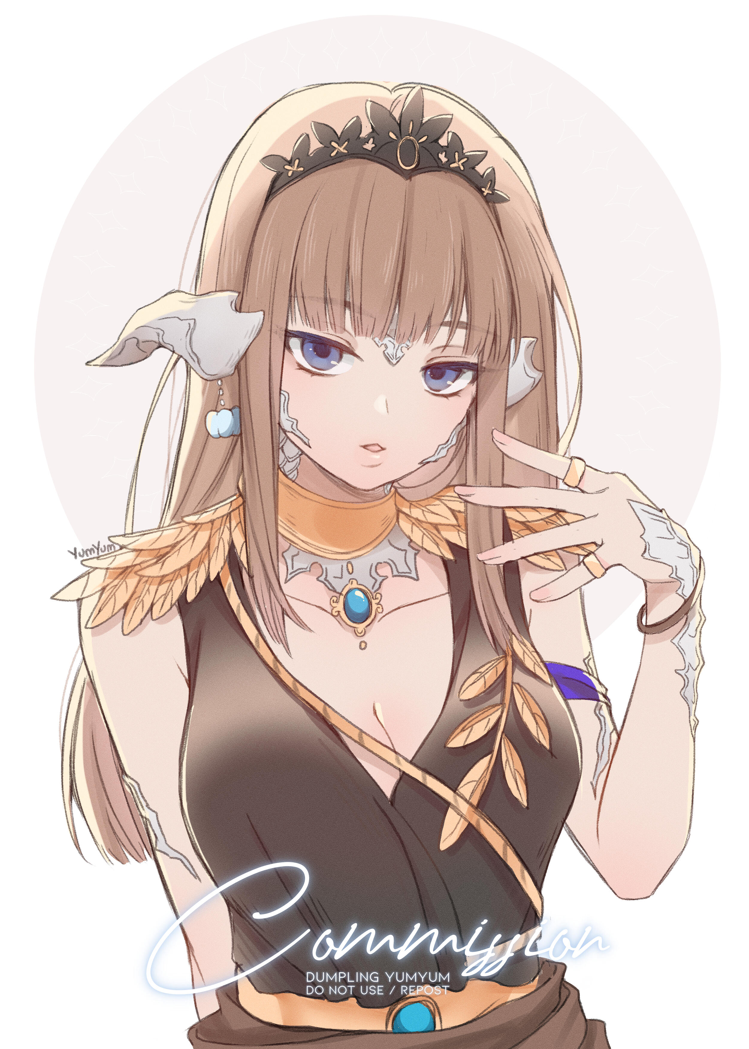 Erio is a petite, lithe woman with fair complexion and sapphire eyes. The Raen has light brown hair styled in a hime cut, though it is not unlikely to see it fashioned differently to suit the occasion.She is reserved in appearance and personality, electing to dress feminine and elegant. Some of Erio's favorite accessories include glass pumpkin and firecrest earrings, an eternity ring; she may choose to forgo silver horn ornaments.