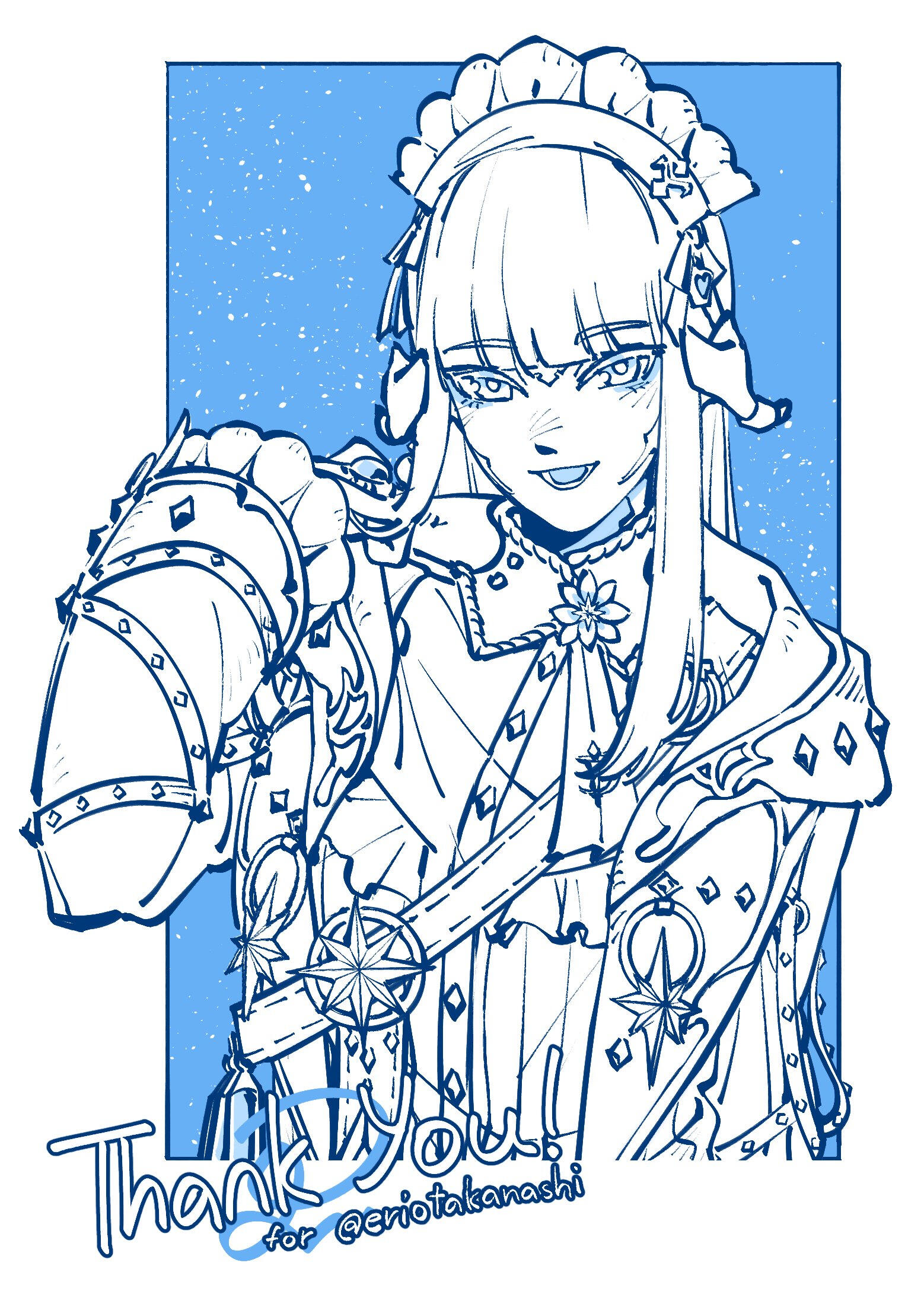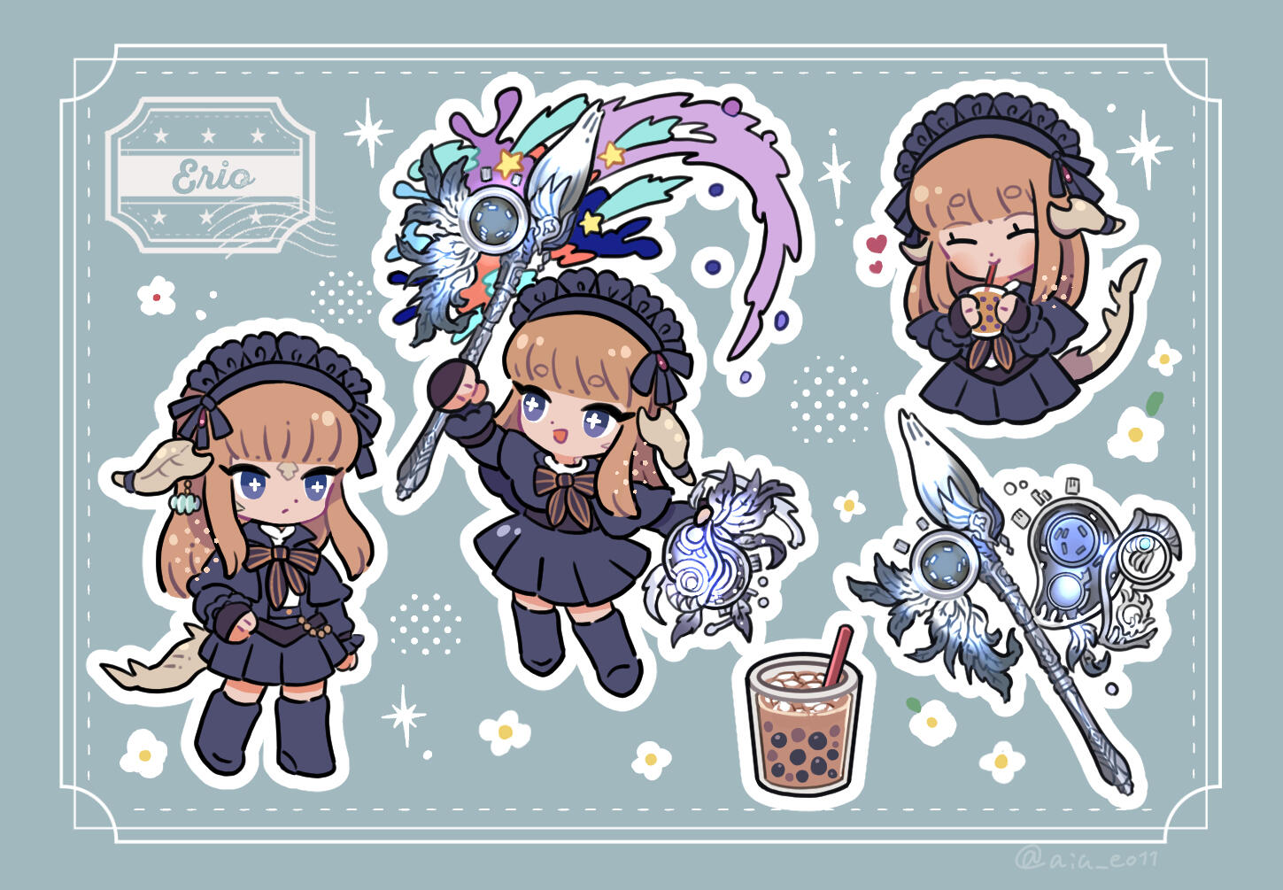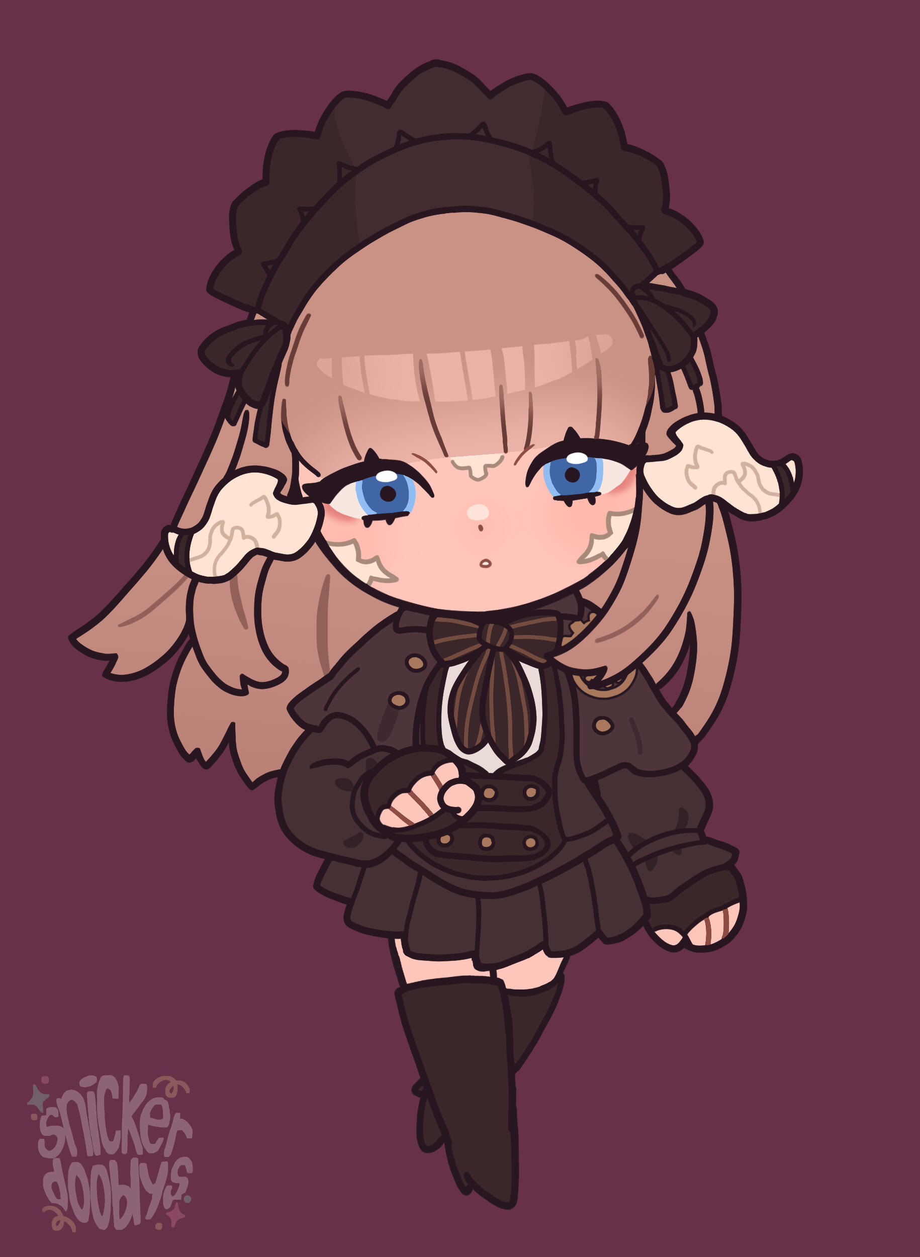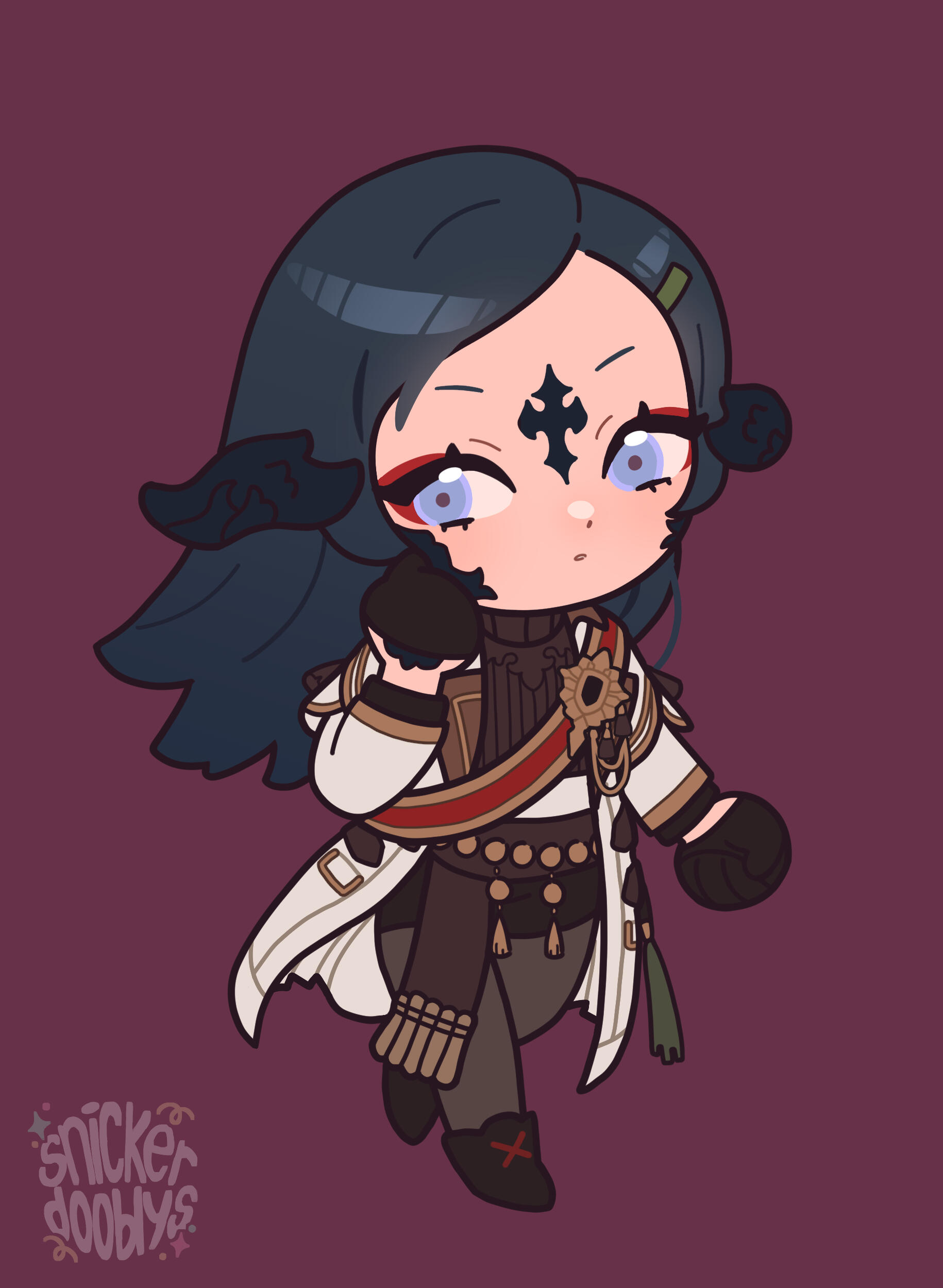 Erio is a petite, lithe woman with fair complexion and sapphire eyes. The Raen has light brown hair styled in a hime cut, though it is not unlikely to see it fashioned differently to suit the occasion.She is reserved in appearance and personality, electing to dress feminine and elegant. Some of Erio's favorite accessories include glass pumpkin and firecrest earrings, an eternity ring; she may choose to forgo silver horn ornaments.
