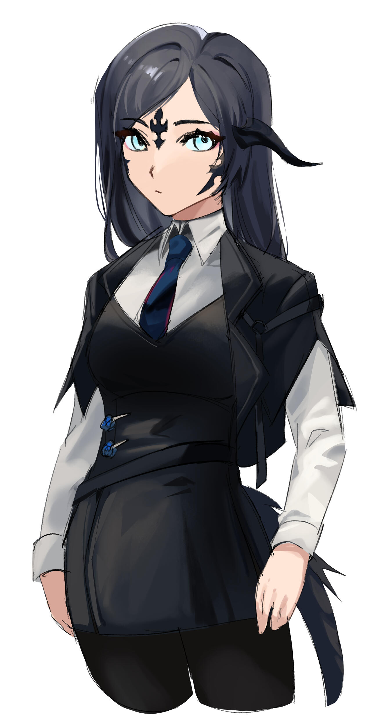 Like her namesake, Aster has lilac eyes and long blue hair neatly kept by a clip. A tall, lean frame following even sharper features. The Au Ra is adorned with dark scales that particularly brush the bridge of her nose.A well-dressed woman, her face seldom betraying carefully crafted composure. Aster carries herself with an air of professionalism. A glass pumpkin dangles beneath a horn, an eternity ring fits the opposite hand.
